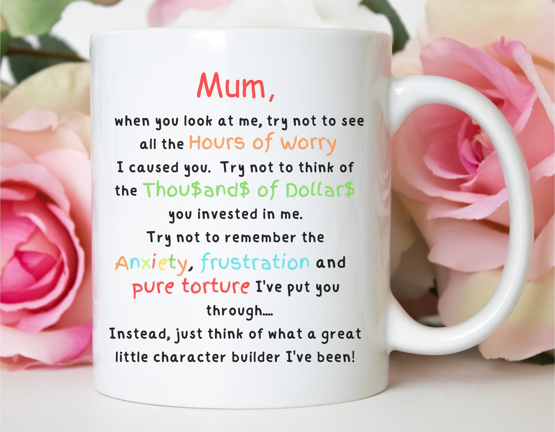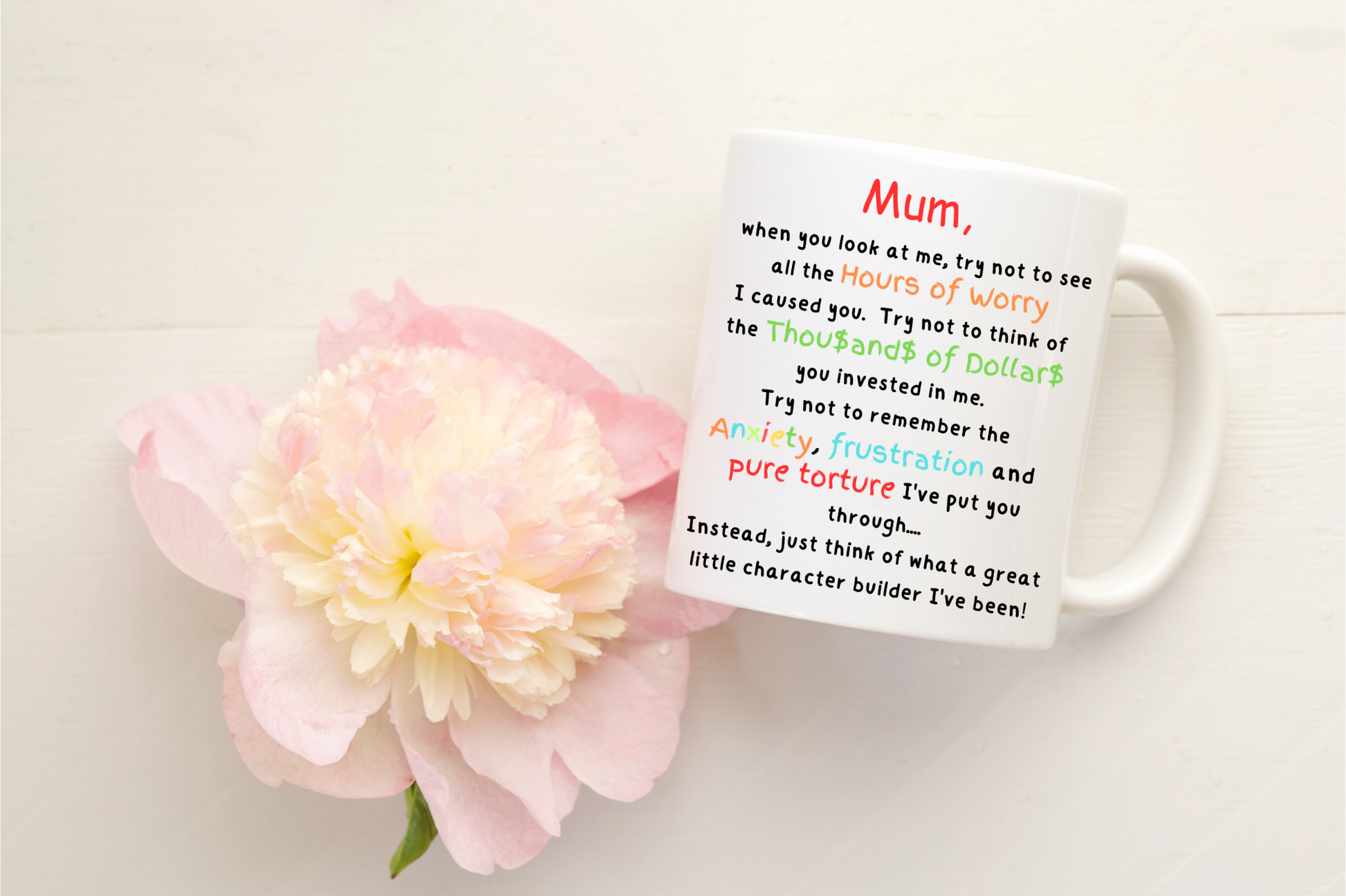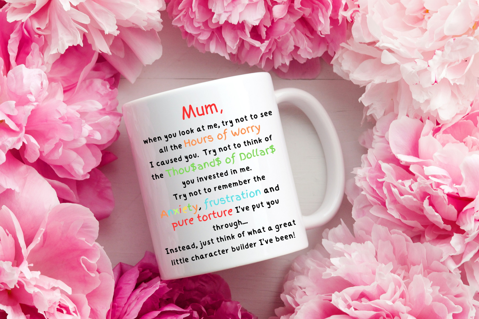 Brighten your mum's day with a splash of humour served on our high-quality mugs, the ultimate gift that keeps on giving! Each mug in our exclusive Character Builder range boasts a hilarious phrase that promises to bring a smile to her face with every sip. What's more, the playful image is thoughtfully printed on both sides of the mug, making it a perfect pick for both left and right-hand users. Whether she's a lover of classic white or sleek black, we've got her style covered, with each colour listed separately to match her personal taste perfectly.