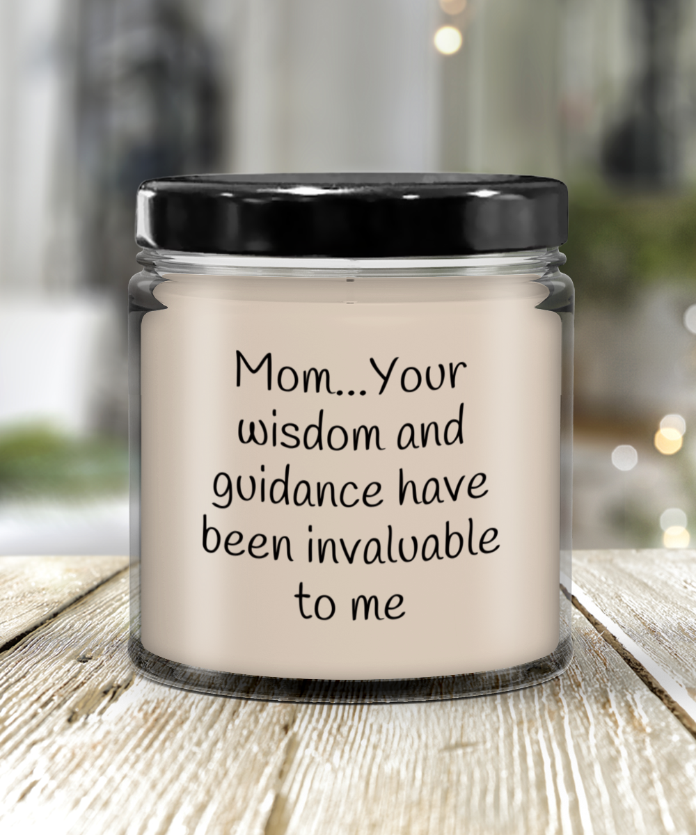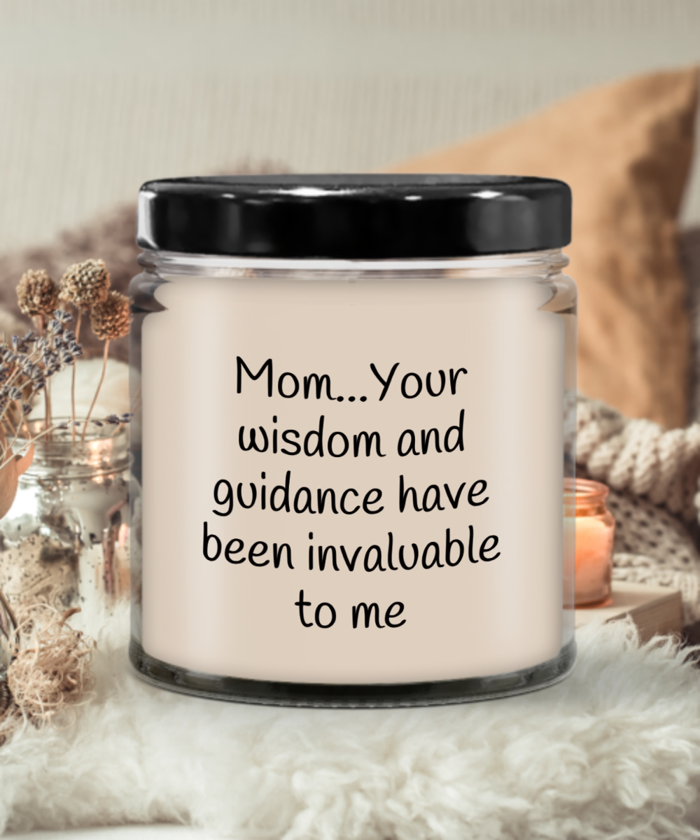 Celebrate Mom with the warm glow of our vanilla-scented, 9-ounce soy blend candle.  This heartfelt gift comes in a clear glass jar topped with a black lid, featuring a tender, loving phrase that melts hearts as smoothly as the candle burns.  Each sentiment is beautifully immortalized on a durable, sublimation printed label, ensuring your message of love endures.  Crafted and shipped with care from the USA in crush-proof packaging, this candle is a sentimental keepsake that Mom will treasure every time she lights it.