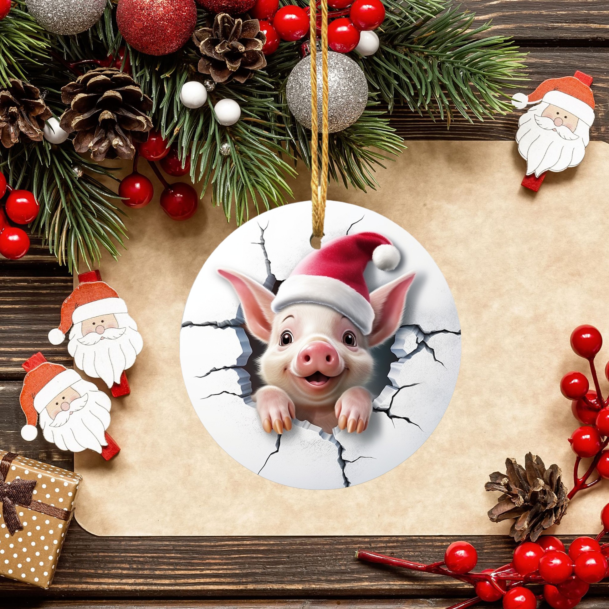 Radiant 3D Animal Breakthrough Porcelain Christmas Piglet Ornament: Elegance in Every Detail for Your Holiday Joy!