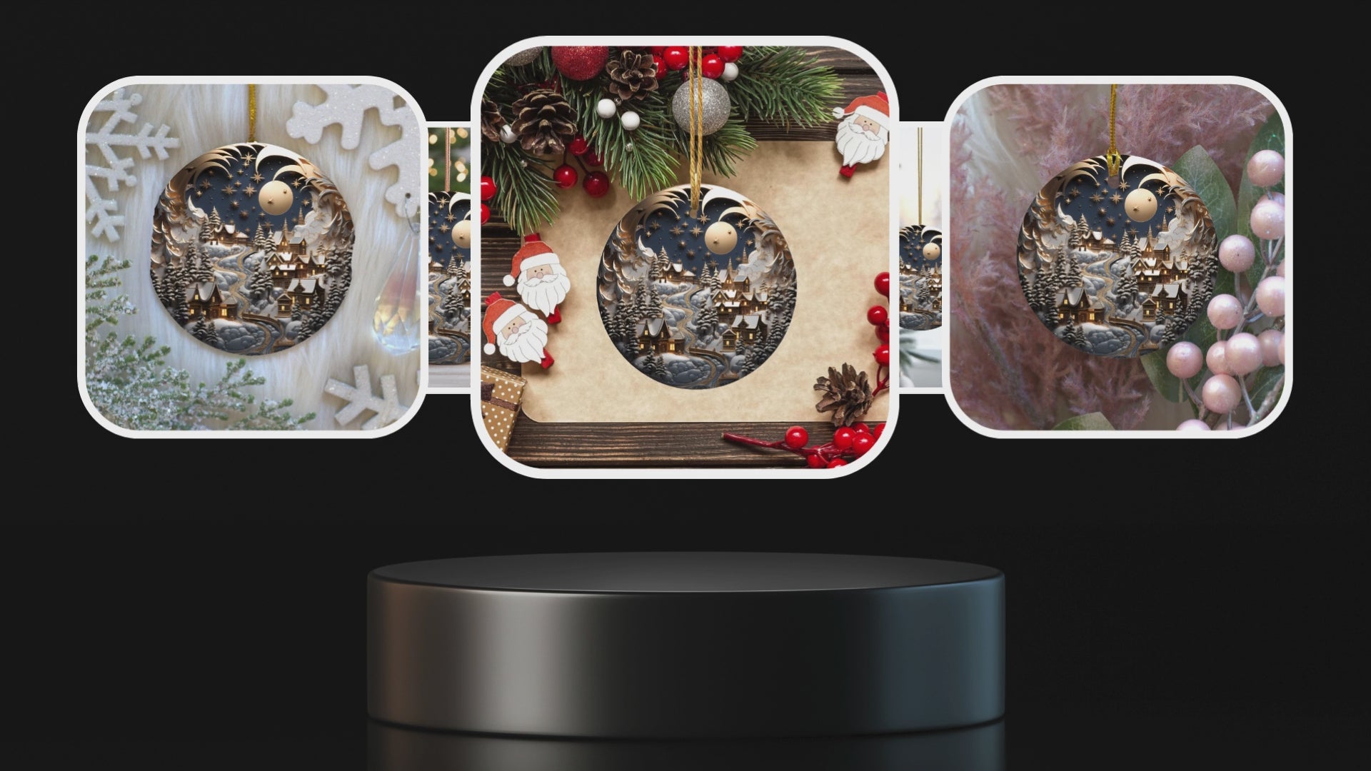 Introducing our exquisite 3D-style image, Designed Porcelain Christmas Ornament, a shining star within our range of 20 unique holiday treasures. These ornaments, available exclusively in a Round shape are offered in two enchanting sizes: 3 inches and 2.75 inches. They come with the choice of being single-sided or dual-sided, with the round 3" single-sided variation even offering the option of a luxurious gold back.
